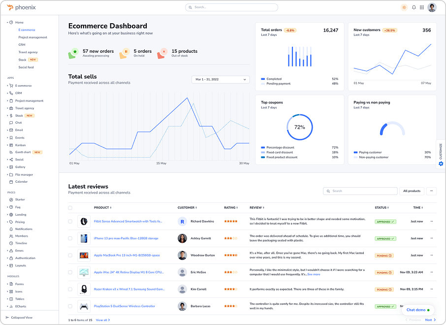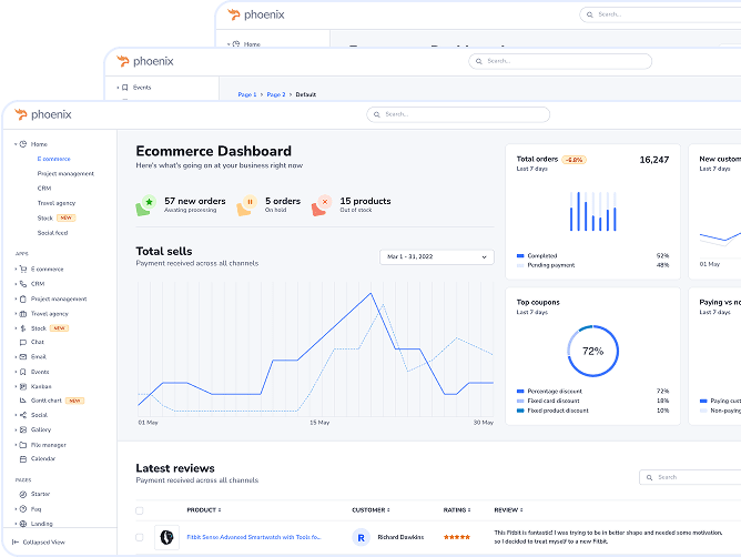 Phoenix, an intuitive admin dashboard designed for seamless management, is celebrated for its user-friendly